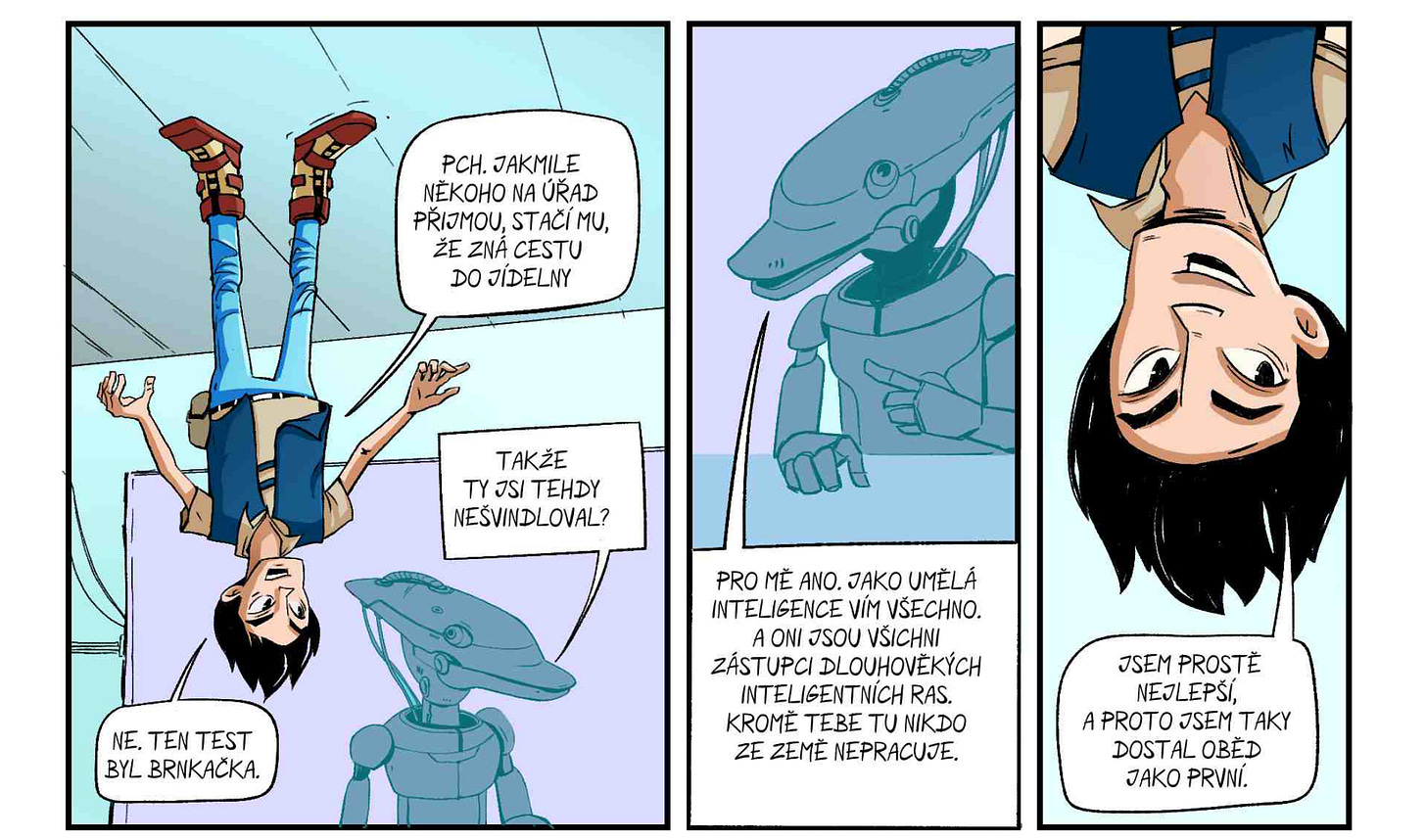 Právě jsem dokončila scénář nového sci-fi komiksu, který navazuje na příběh Vesmírné zásilkovny. Kresby opět vytvořil Martin Hanschild a kniha vyjde ještě letos v nakladatelství Plivníci.